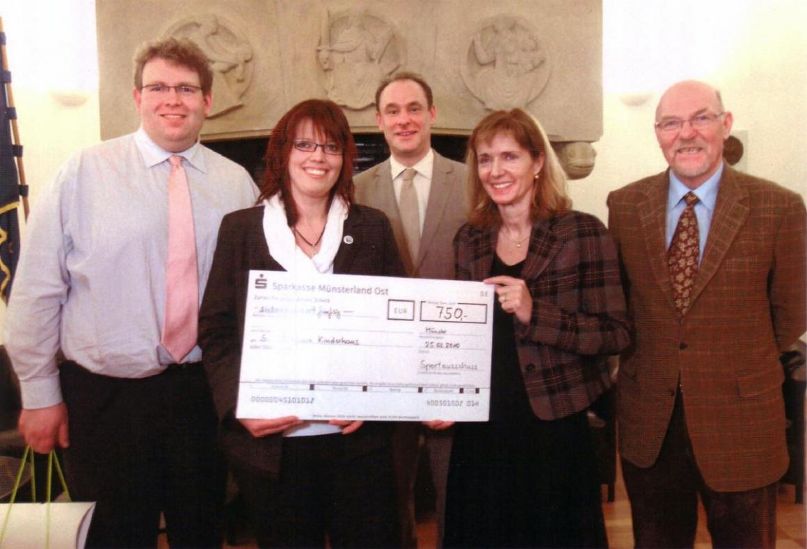 Der 1. Vorsitzende des SC Westfalia Kinderhaus, Franz Josef Rensing, nahm den mit 1500 Euro dotierten Preis, von Ruth Klimke, der Ehefrau des 1999 verstorbenen Dr. Reiner Klimke und Ihren Söhnen Rolf und Michael Klimke entgegen.