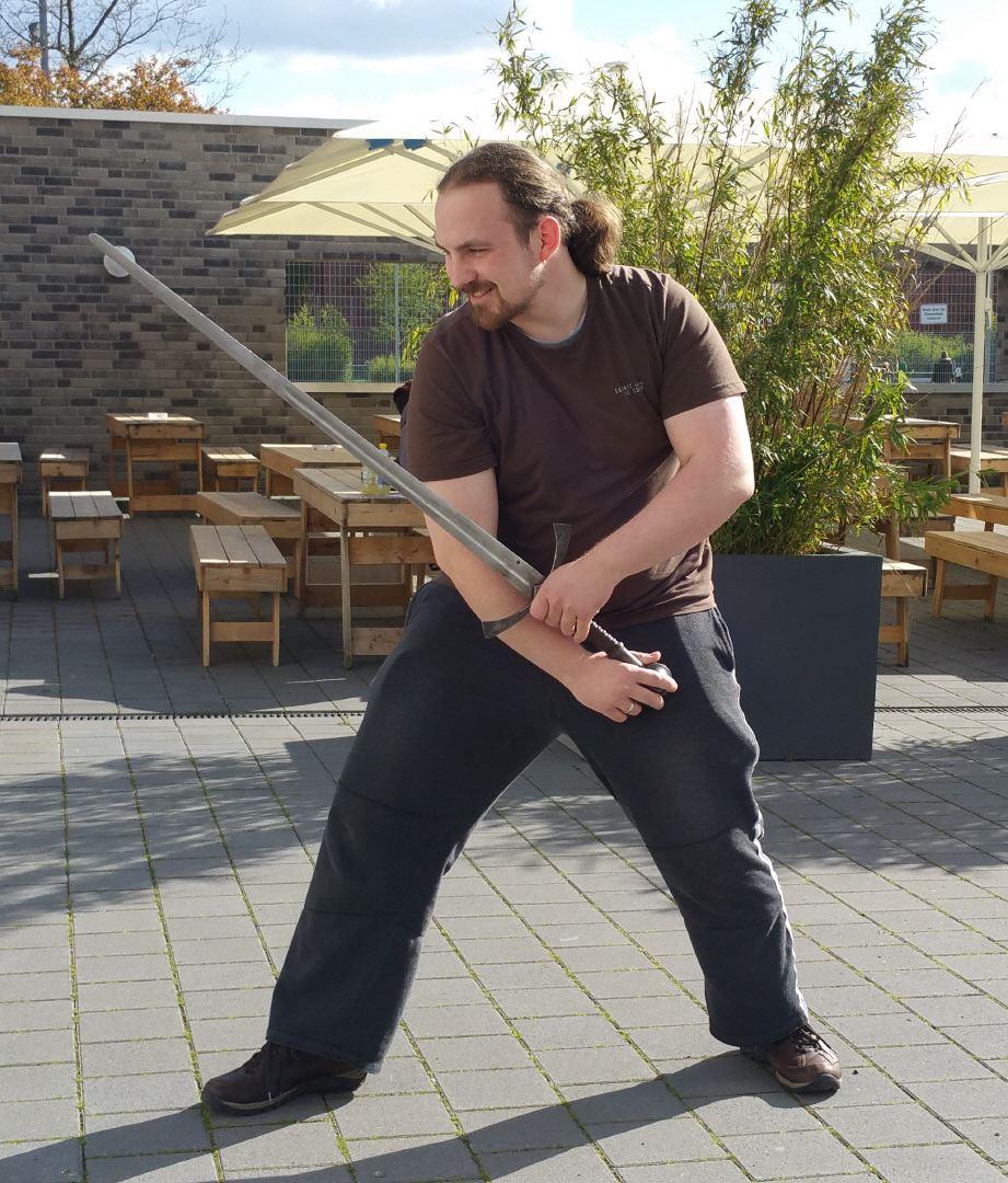 Mittelalterlicher Schwertkampf ins Hier und Jetzt versetzt.