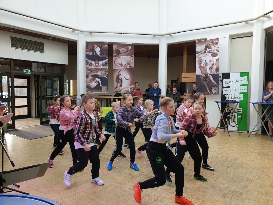 Der Sportverein Westfalia Kinderhaus bietet "Geselliges Tanzen" für über 60-jährige an. Altersmäßig sind nach oben keine Grenzen gesetzt. Zu fröhlicher, motivierender Musik wird im Kreis getanzt, in der Gasse, im Square, aber auch einzeln im Block- oder Line-Tanz.