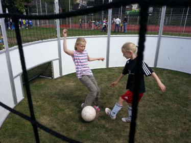 An den verschiedenen Mitmach-Stationen unserer Abteilungen konnten die Kleinsten beweisen, was in ihnen steckt. Wer den spannenden Parcours durchlief und dabei alle Stempel sammelte, nahm an einer Tombola mit vielen spannenden Gewinnmöglichkeiten teil. Hauptpreise waren Plätze bei den Ferienfreizeiten unserer Fußball- und Tennisabteilung. Außerdem wurde bei dieser Aktion die sportlichste Grundschule in Kinderhaus gesucht. Die Grundschule am Kinderbach gewann neben dem Titel einen Pokal und ein prall gefülltes Ballnetz.
