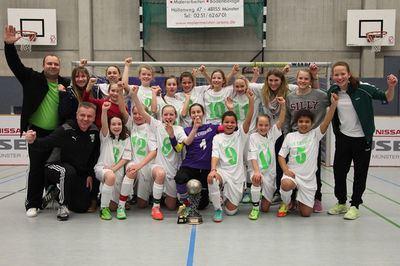 Komplettiert wurde das erfolgreiche Wochenende durch den Turniersieg der U9-Mädchen beim Jubiläumsturnier, das im Rahmen der Mädchenstadtmeisterschaften vom SC Gremmendorf ausgerichtet wurde. Da es in dieser Altersklasse noch keine offiziellen Stadtmeisterschaften gibt, spielten 4 Mannschaften im Modus jeder gegen jeden. Nach 3 souveränen Siegen standen Westfalia's jüngste Kickerinnen als Turniersieger fest.
