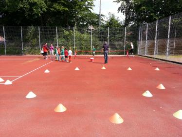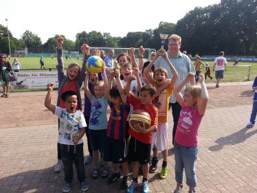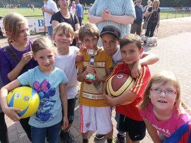 An den verschiedenen Mitmach-Stationen unserer Abteilungen konnten die Kleinsten beweisen, was in ihnen steckt. Wer den spannenden Parcours durchlief und dabei alle Stempel sammelte, nahm an einer Tombola mit vielen spannenden Gewinnmöglichkeiten teil. Hauptpreise waren Plätze bei den Ferienfreizeiten unserer Fußball- und Tennisabteilung. Außerdem wurde bei dieser Aktion die sportlichste Grundschule in Kinderhaus gesucht. Die Grundschule am Kinderbach gewann neben dem Titel einen Pokal und ein prall gefülltes Ballnetz.