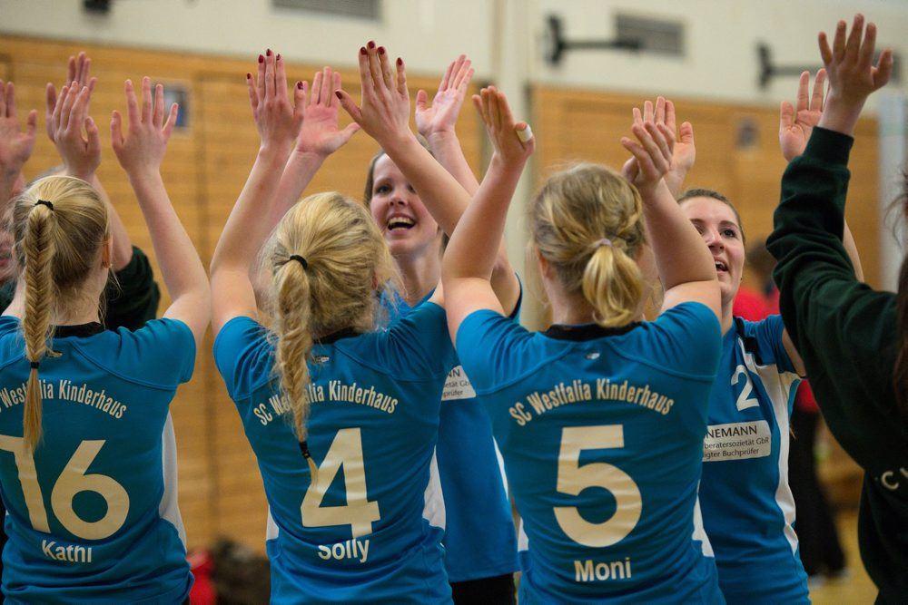 Direkt nach dem Schlusspfiff kannte die Freude keine Grenzen mehr. Jubelnd und singend hüpften die Volleyballerinnen vom SC Westfalia Kinderhaus über das Spielfeld der Uppenbergschule und genossen ihren Erfolg in vollen Zügen. In der Relegation hatten sie zuvor mit zwei klaren Siegen triumphiert und damit den Aufstieg in die Bezirksliga perfekt gemacht.